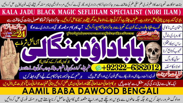 Amil Baba Dawood Bangali { PAK: 0322-6382012 ---- UAN: 0092-322-6382012} is a renowned spiritual healer and master of ancient occult sciences, specializing in Black Magic, Sephi Ilam, Nori Ilam, and Voodoo Spells. With decades of experience in the mystical arts, he has gained a reputation as a powerful and trusted guide for those seeking solutions to life's most challenging problems.Whether it's love and relationship issues, business success, enemy protection, enemy dead or supernatural disturbances, Amil Baba Dawood Bangali provides authentic and effective remedies rooted in deep spiritual knowledge. His expertise in Kala Jadu (Black Magic), Sephi Ilam (sacred scriptures), Nori Ilam (divine light magic), and Voodoo rituals ha