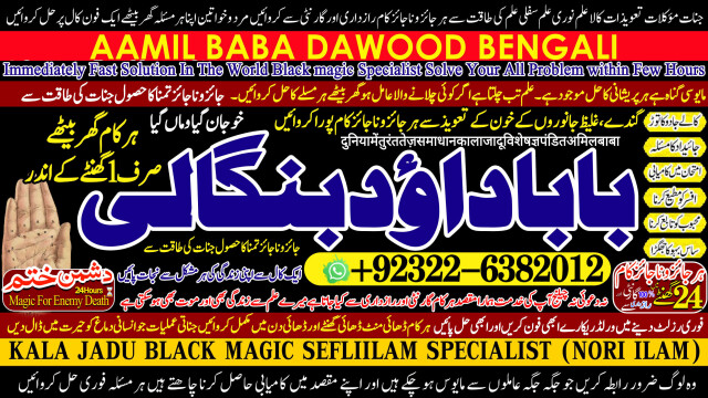 Amil Baba Dawood Bangali { PAK: 0322-6382012 ---- UAN: 0092-322-6382012} is a renowned spiritual healer and master of ancient occult sciences, specializing in Black Magic, Sephi Ilam, Nori Ilam, and Voodoo Spells. With decades of experience in the mystical arts, he has gained a reputation as a powerful and trusted guide for those seeking solutions to life's most challenging problems.Whether it's love and relationship issues, business success, enemy protection, enemy dead or supernatural disturbances, Amil Baba Dawood Bangali provides authentic and effective remedies rooted in deep spiritual knowledge. His expertise in Kala Jadu (Black Magic), Sephi Ilam (sacred scriptures), Nori Ilam (divine light magic), and Voodoo rituals ha